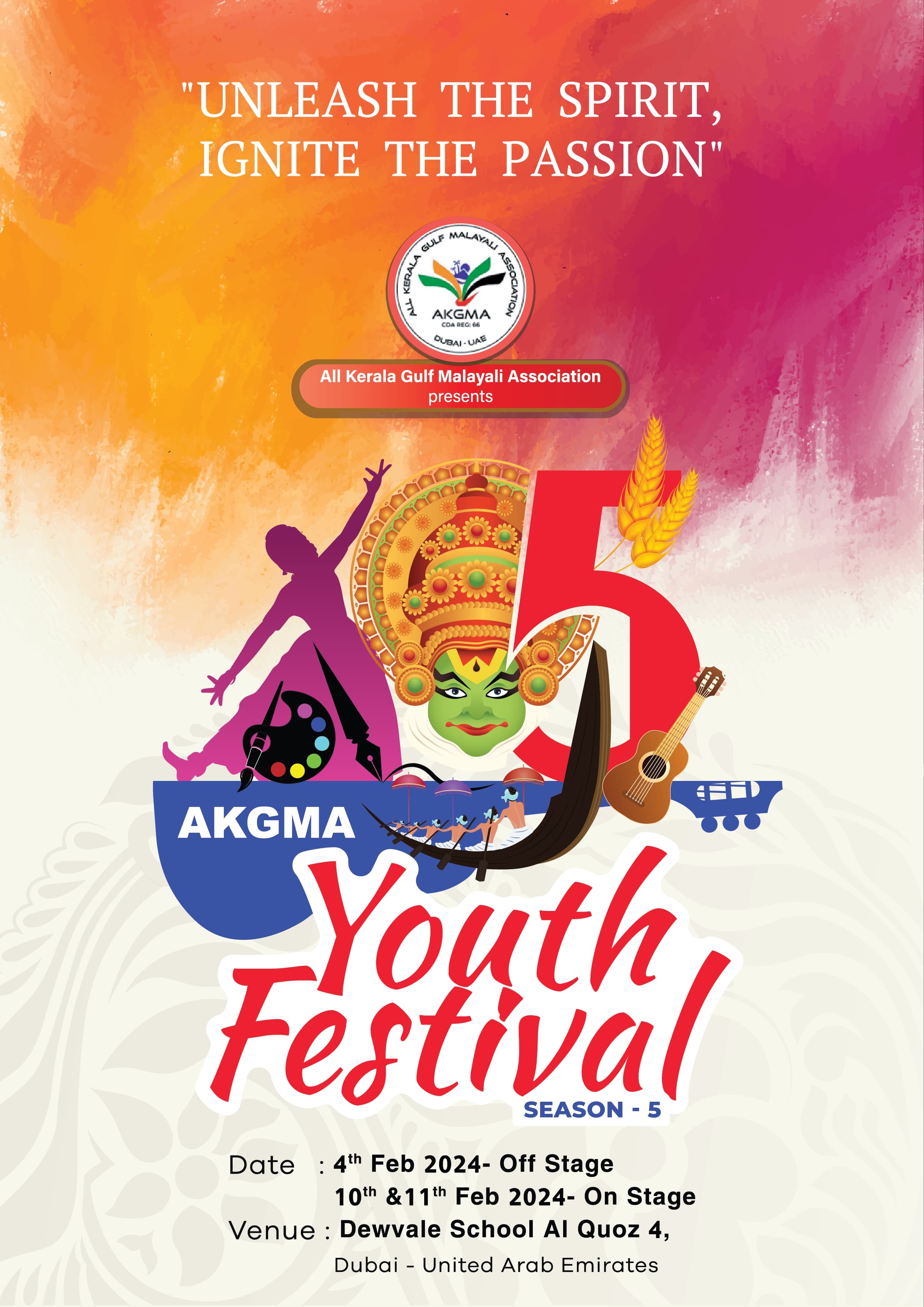 All Kerala Gulf Malayali Association , excited to announce that registration for the much-anticipated AKGMA YOUTH FESTIVAL 2024 is now open! This event has established itself as one of Dubai's top professionally managed youth festivals, and we're thrilled to be heading into our 5th season. We look forward to your involvement and support.